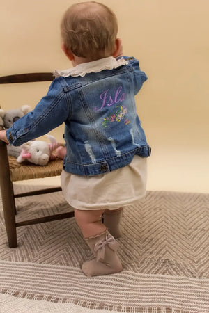 They are available in 3 sizes, choose from: 0-6 months, 6-12 months, or 12-24 months.
