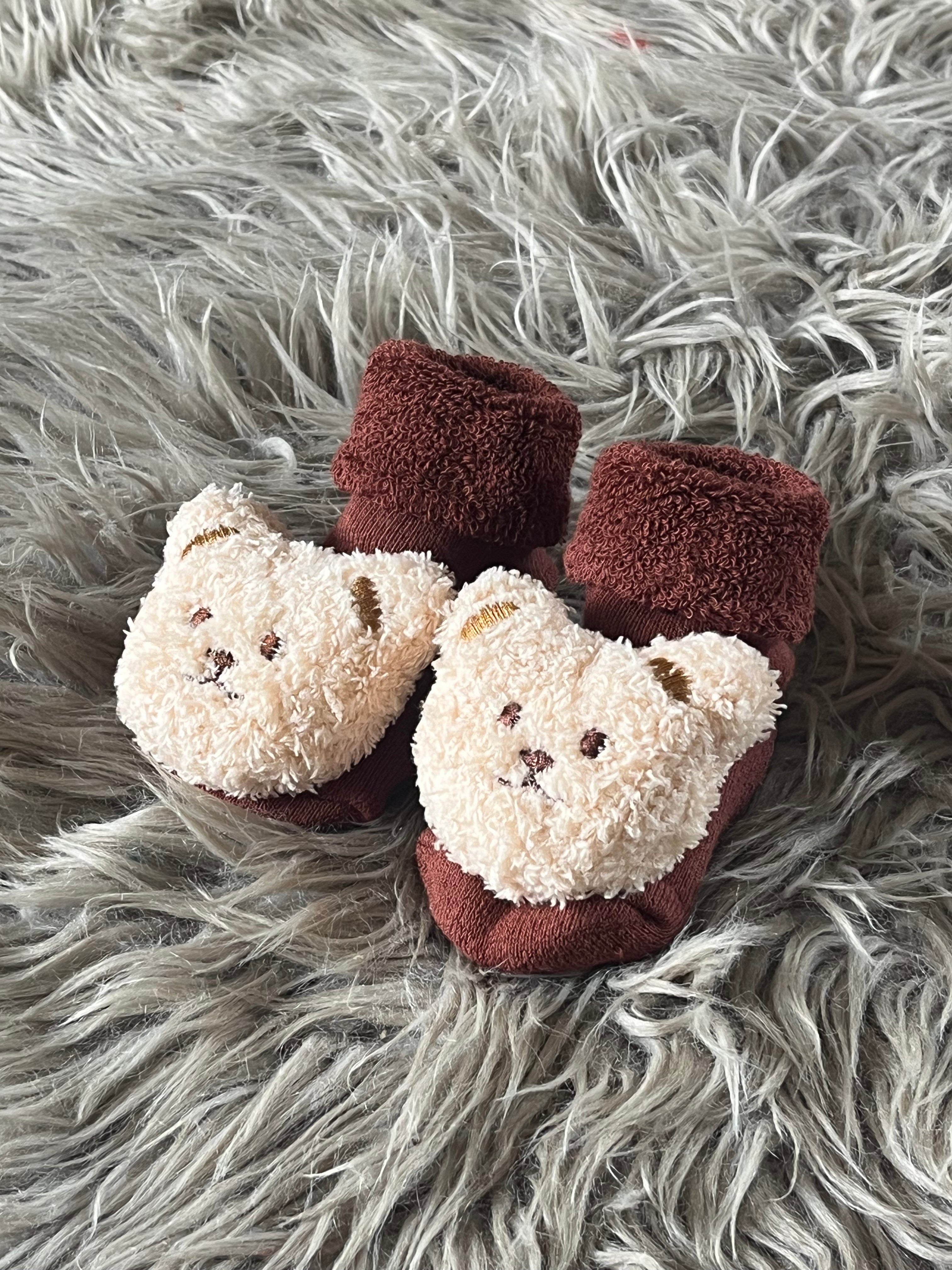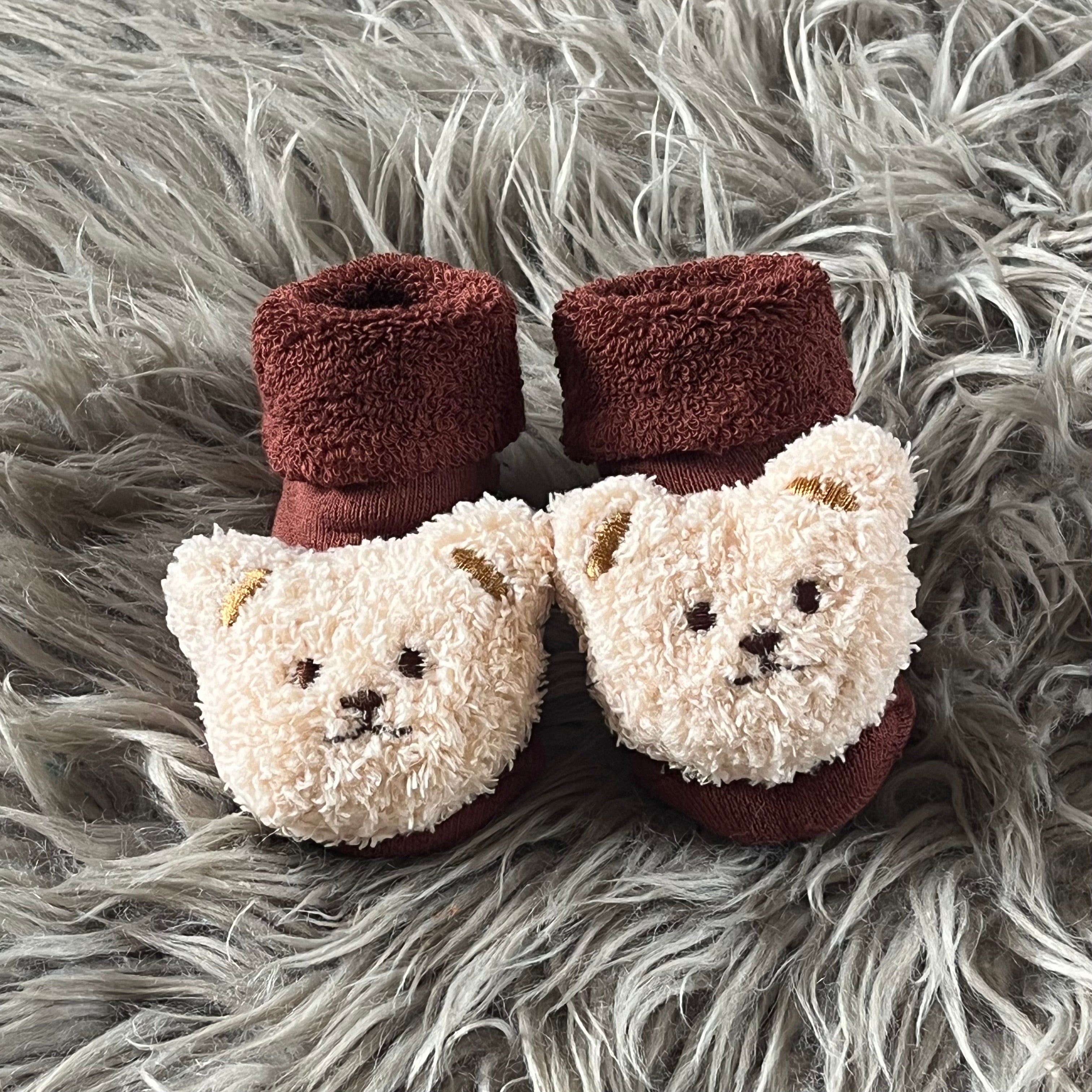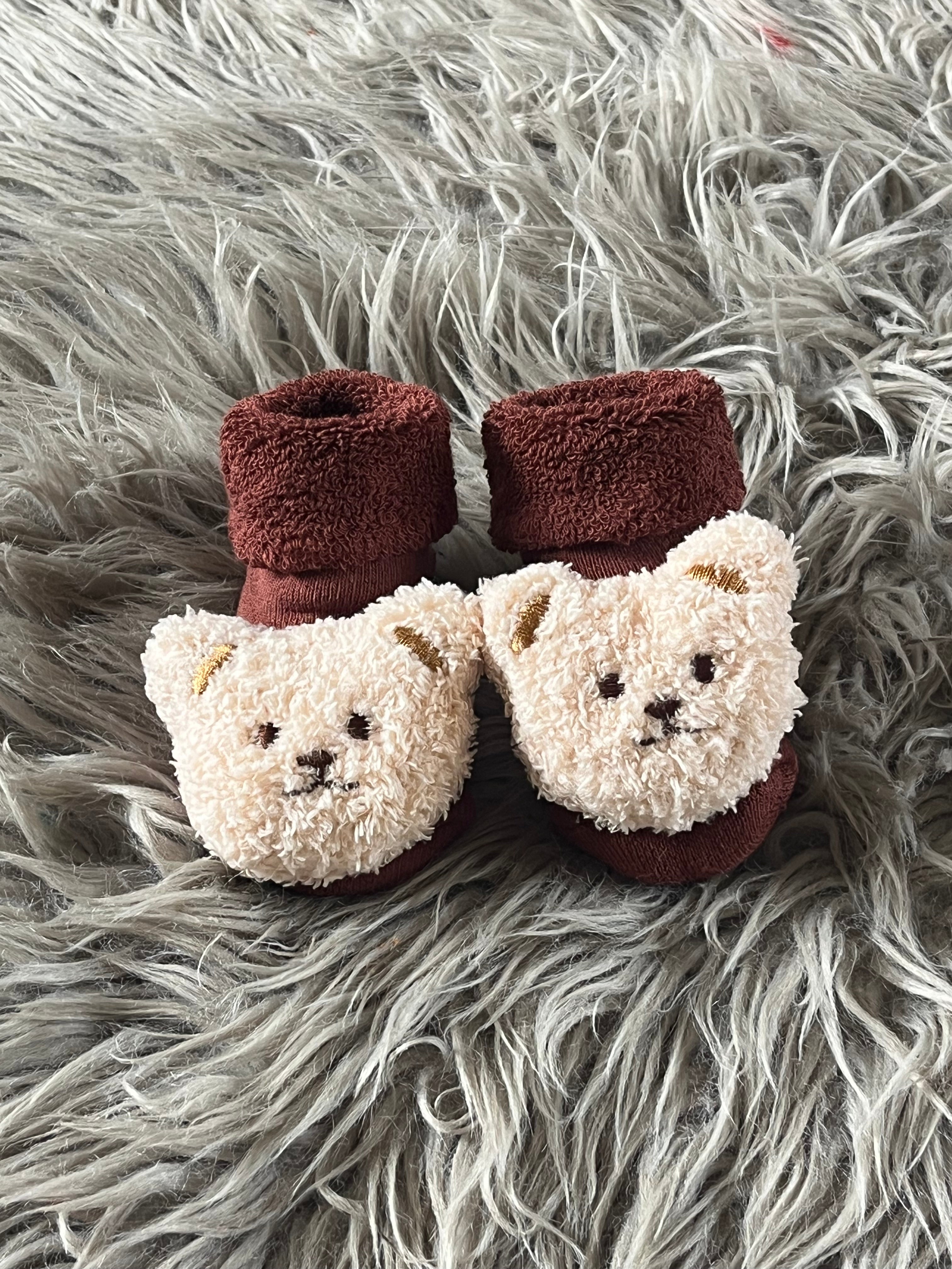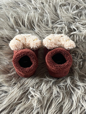 These gorgeous Burgundy Teddy Bear Slipper Socks make the cutest gift for any newborn or little one, they feature non slip grip on the bottom making them perfect for grippy socks at home.
