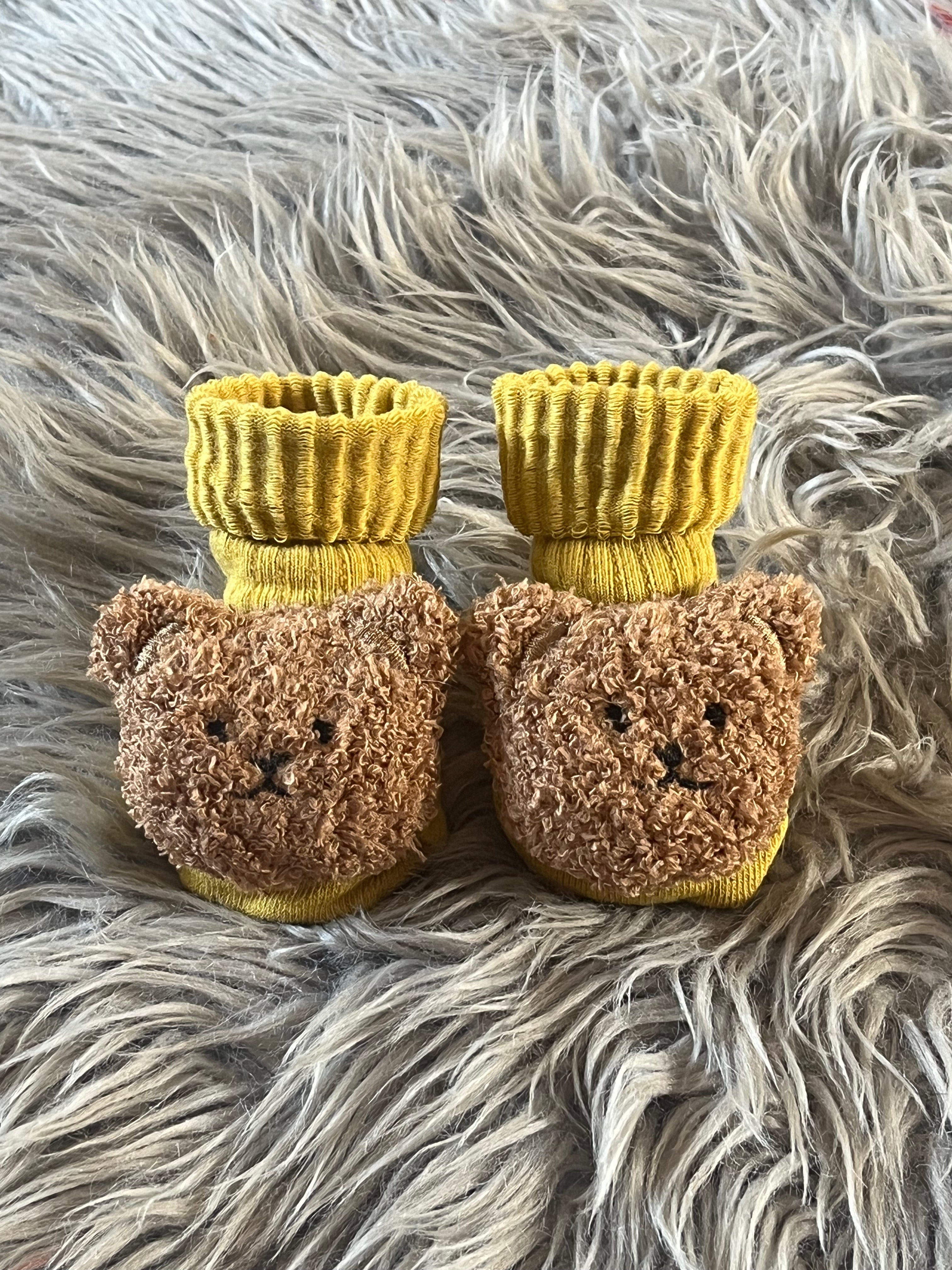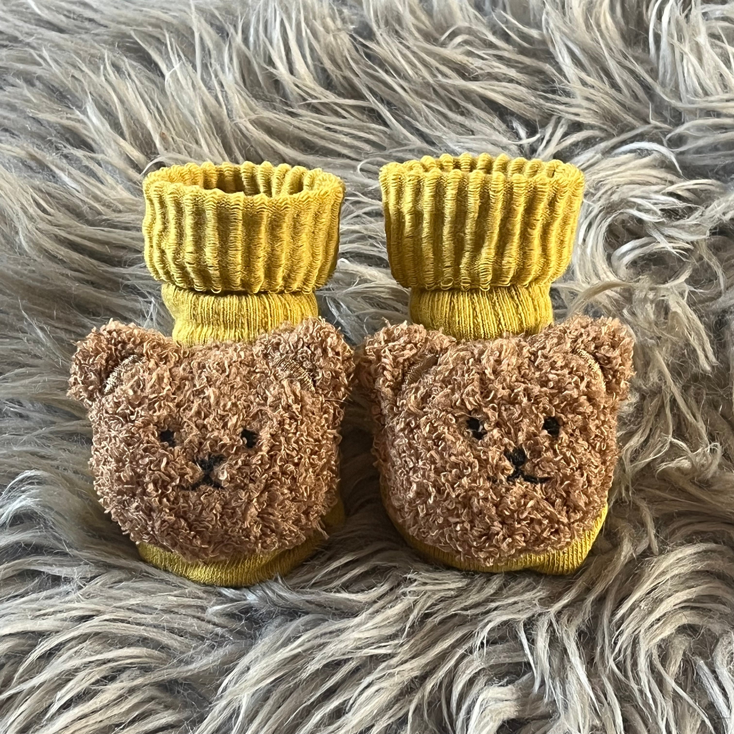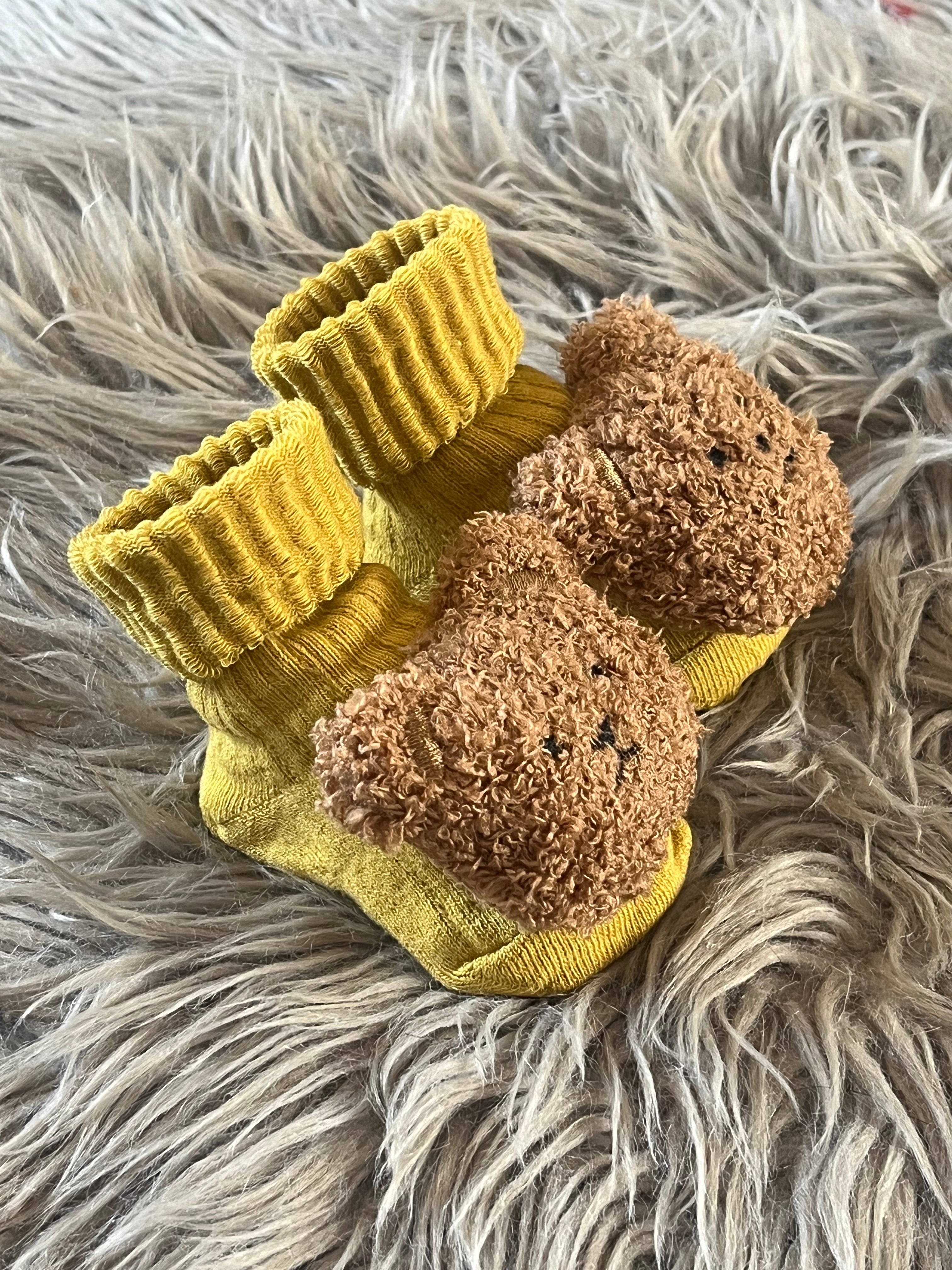 These gorgeous Mustard Yellow Teddy Bear Slipper Socks make the cutest gift for any newborn or little one, they feature non slip grip on the bottom making them perfect for grippy socks at home.