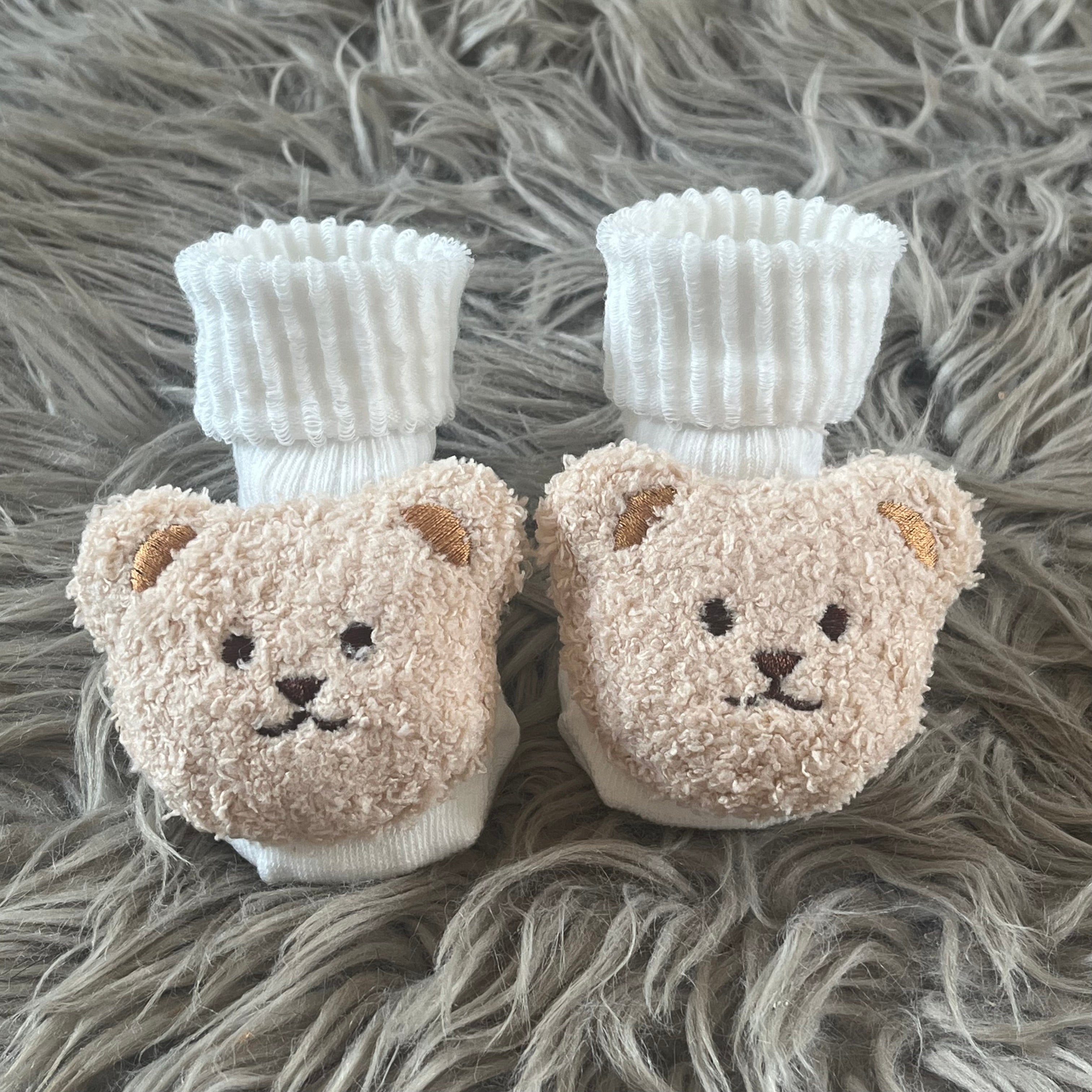 These gorgeous White Teddy Bear Slipper Socks make the cutest gift for any newborn or little one, they feature non slip grip on the bottom making them perfect for grippy socks at home.